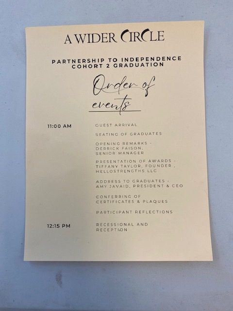 Jobs Have Priority, Inc. is thrilled to announce the graduation of our valued customer, Ms. Tameka Kennedy, from the “A Wider Circle” Partnership to Independence (PTI) program. The graduation ceremony took place on April 4th at the Atlantic Street SE location, marking the end of a comprehensive three-year training process.